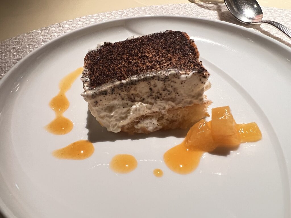 ティラミスはアプリコットに浸した紅茶のティラミス。